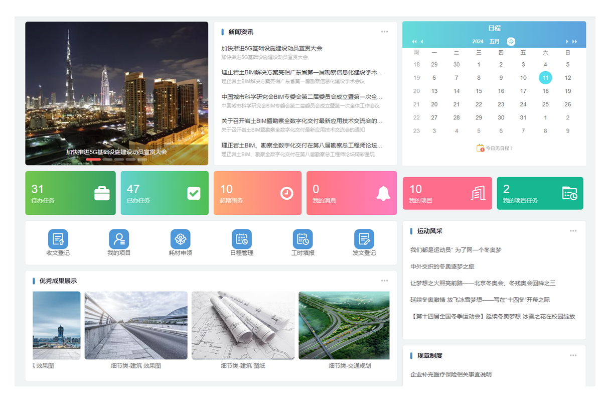 - 信息发布:发布和管理企业综合新闻、通知公告、规章制度、公共资源等动态信息。